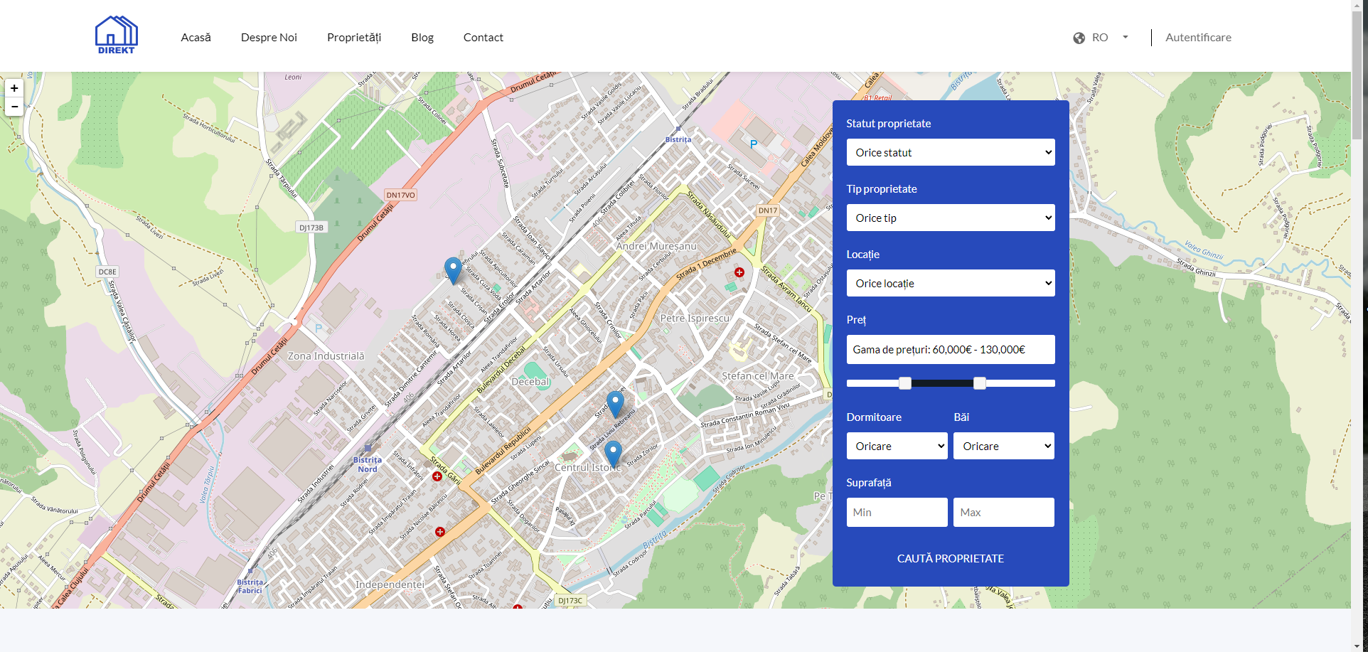 Platformă completă pentru agenții imobiliare din Bistrița-Năsăud, dezvoltată pentru gestionarea proprietăților, agenți imobiliari, societăți comerciale și clienți. Include sistem de căutare avansat cu filtre, hărți interactive cu Leaflet, autentificare Google, sistem de mesaje și tickete de suport.